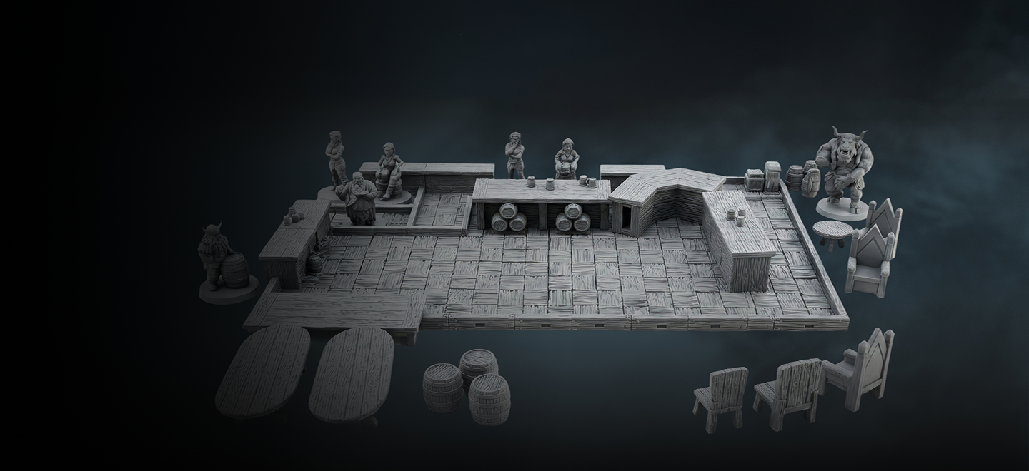 Bring your world to life with modular tile sets designed for taverns, dungeons, caves, and more. Our terrain is built to be practical on the table—easy to arrange, sturdy enough for repeated use, and immersive enough to elevate every encounter.
