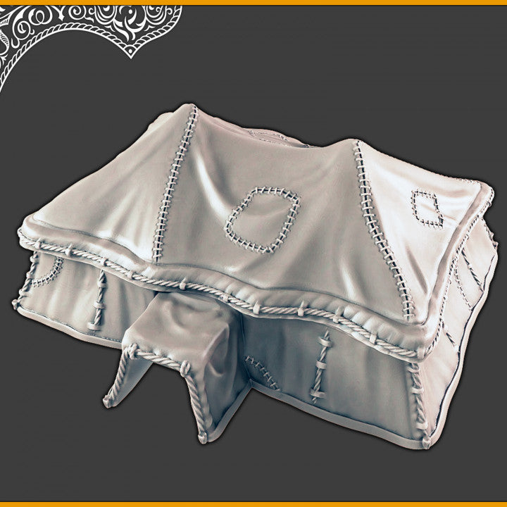 Elevate your tabletop scenes with the Grand Tent, a versatile 3D printed terrain piece featuring a removable top for easy access to the detailed interior. Perfect for desert encampments, command posts, or mysterious meeting spots in your Dungeons & Dragons and RPG adventures.