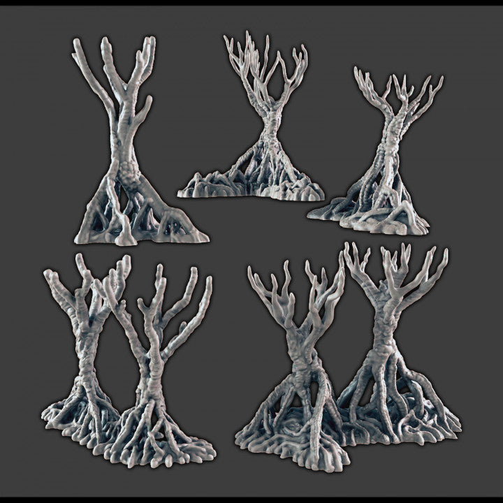 Enhance your tabletop terrain with these intricately designed 3D printed Mangrove Trees. Perfect for RPGs, wargames, and dioramas, these trees bring realistic, swampy environments to life.