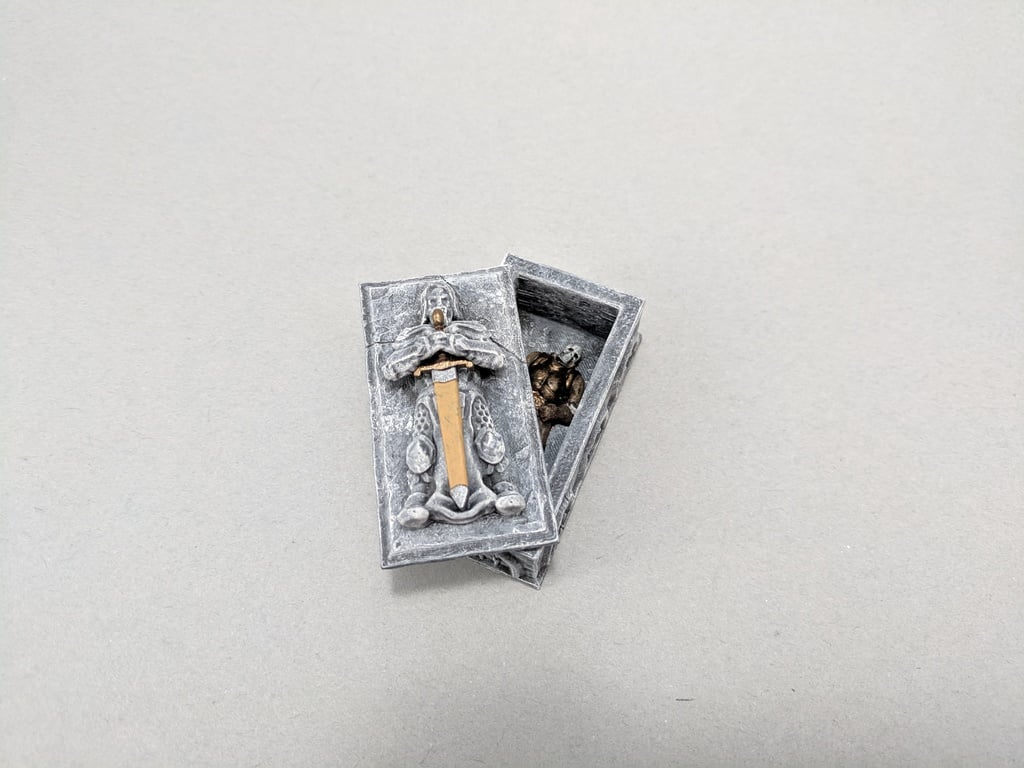 Bring epic storytelling to life with this intricately designed 3D-printed Sarcophagus with Removable Sword. Perfect for setting the scene in your next Dungeons & Dragons campaign or any tabletop RPG adventure.